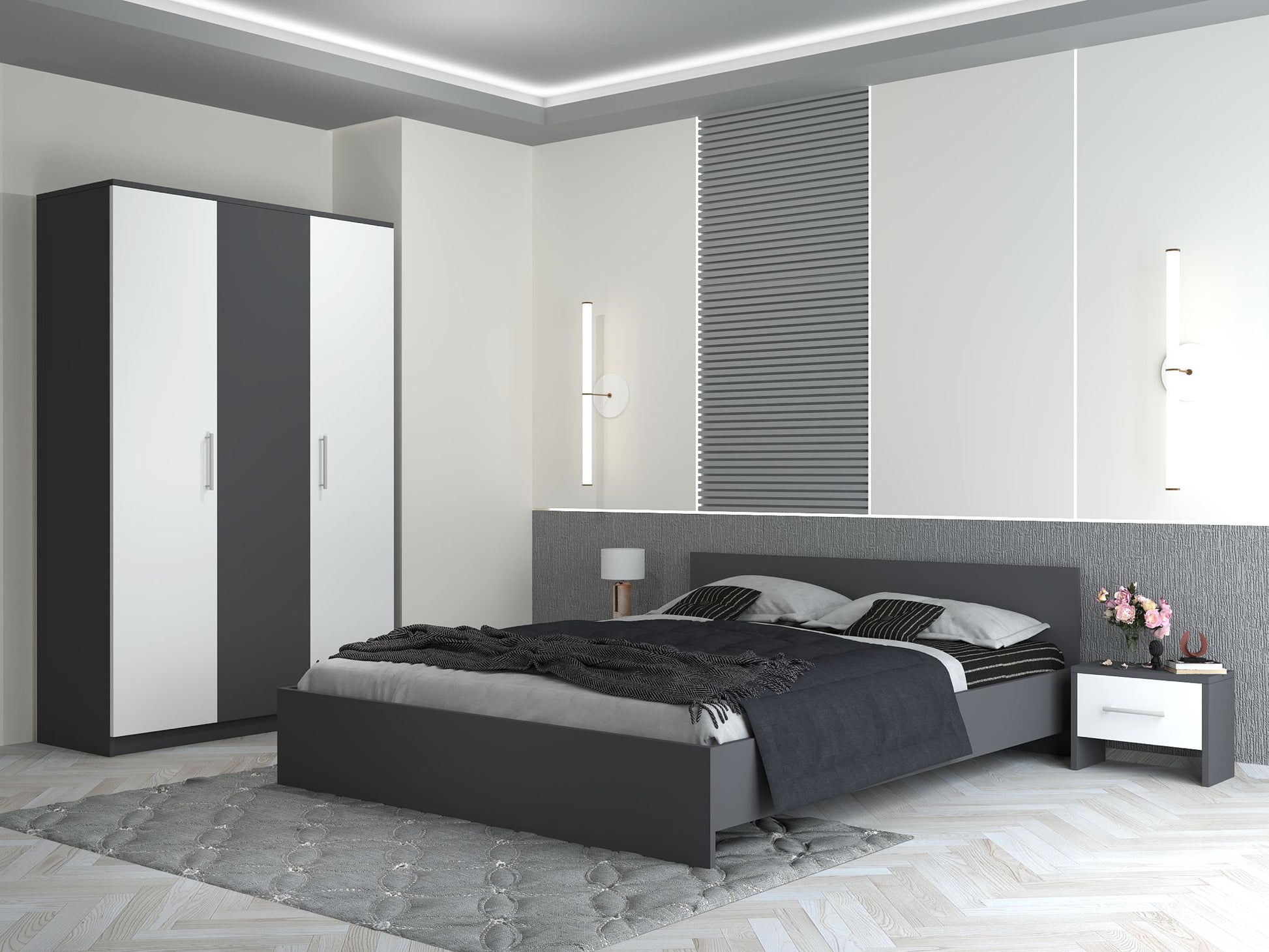 Dormitorul EVA este soluția ideală pentru cei care își doresc un dormitor complet, practic și cu un design modern, potrivit atât pentru uz personal, cât și pentru apartamente închiriate sau unități Airbnb.
