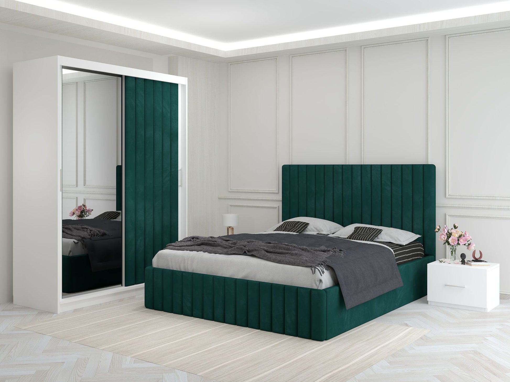 Dormitor Melania Verde cu Dressing Tapitat