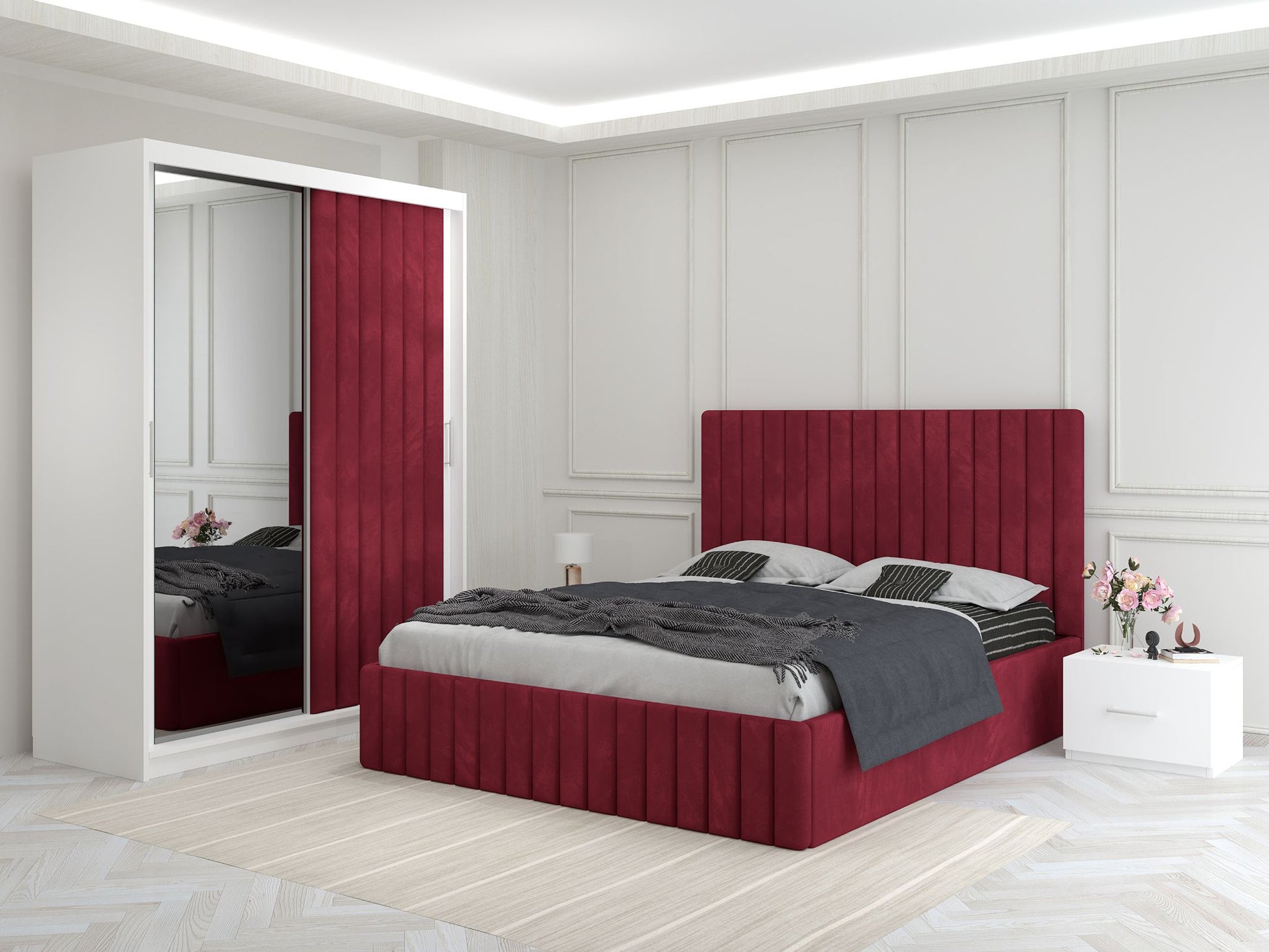 Dormitor Melania visiniu cu Dressing Tapitat
