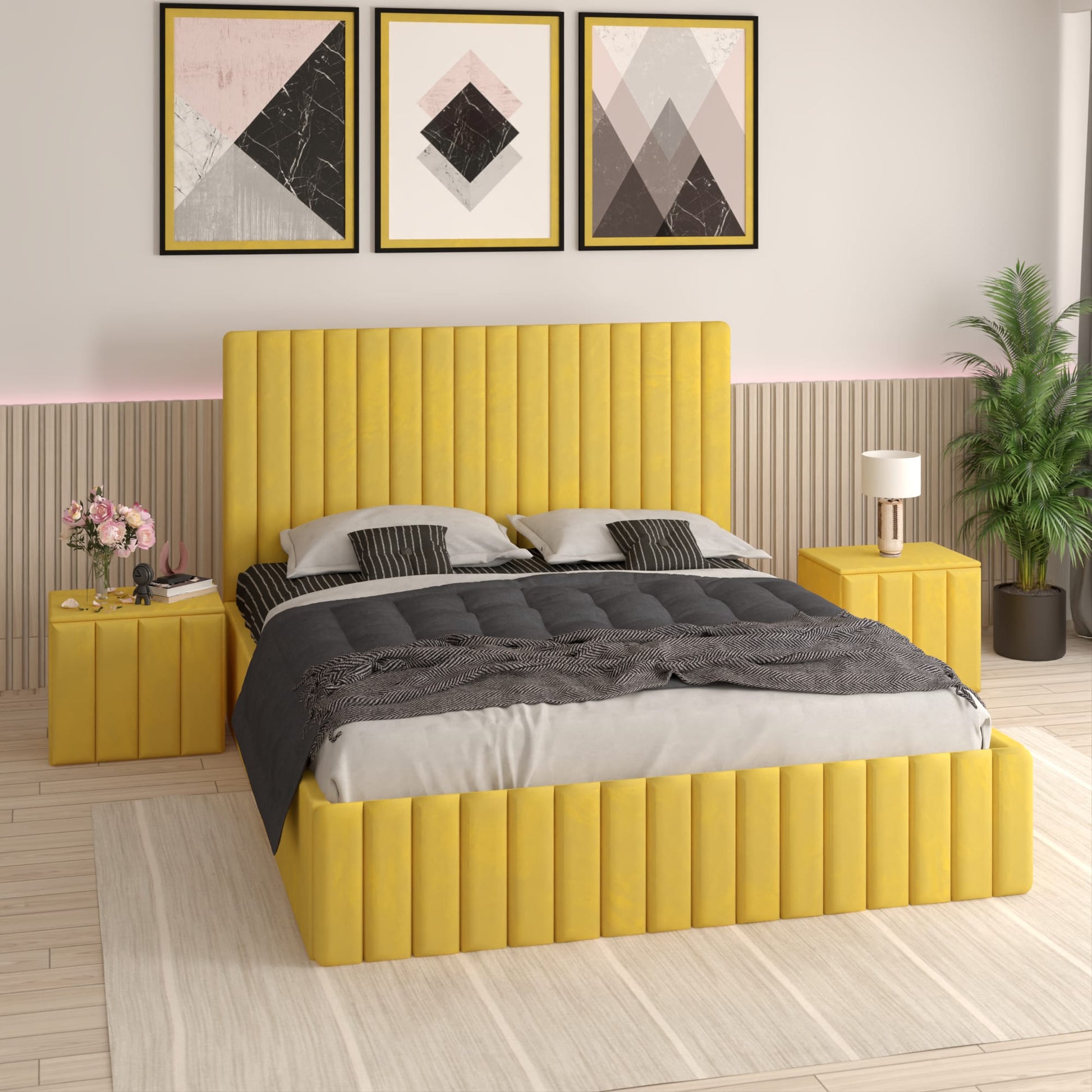 Pat Melania Galben Catifea Premium cu Noptiere Tapitate
