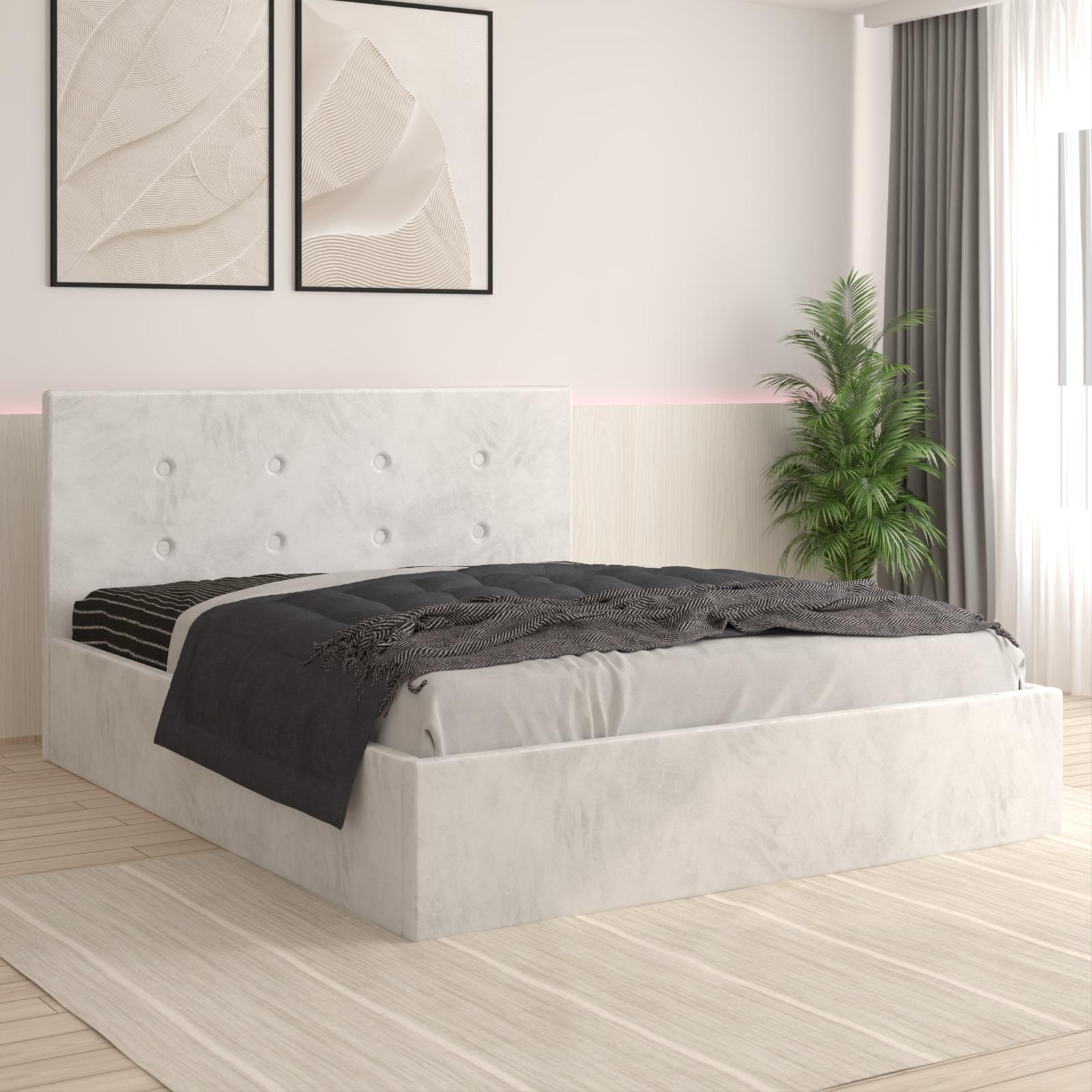 Patul Adrian este alegerea ideală pentru un dormitor elegant și funcțional. Cu un design modern și o tăblie capitonată cu nasturi decorativi, acest model aduce un plus de stil și confort oricărui spațiu.