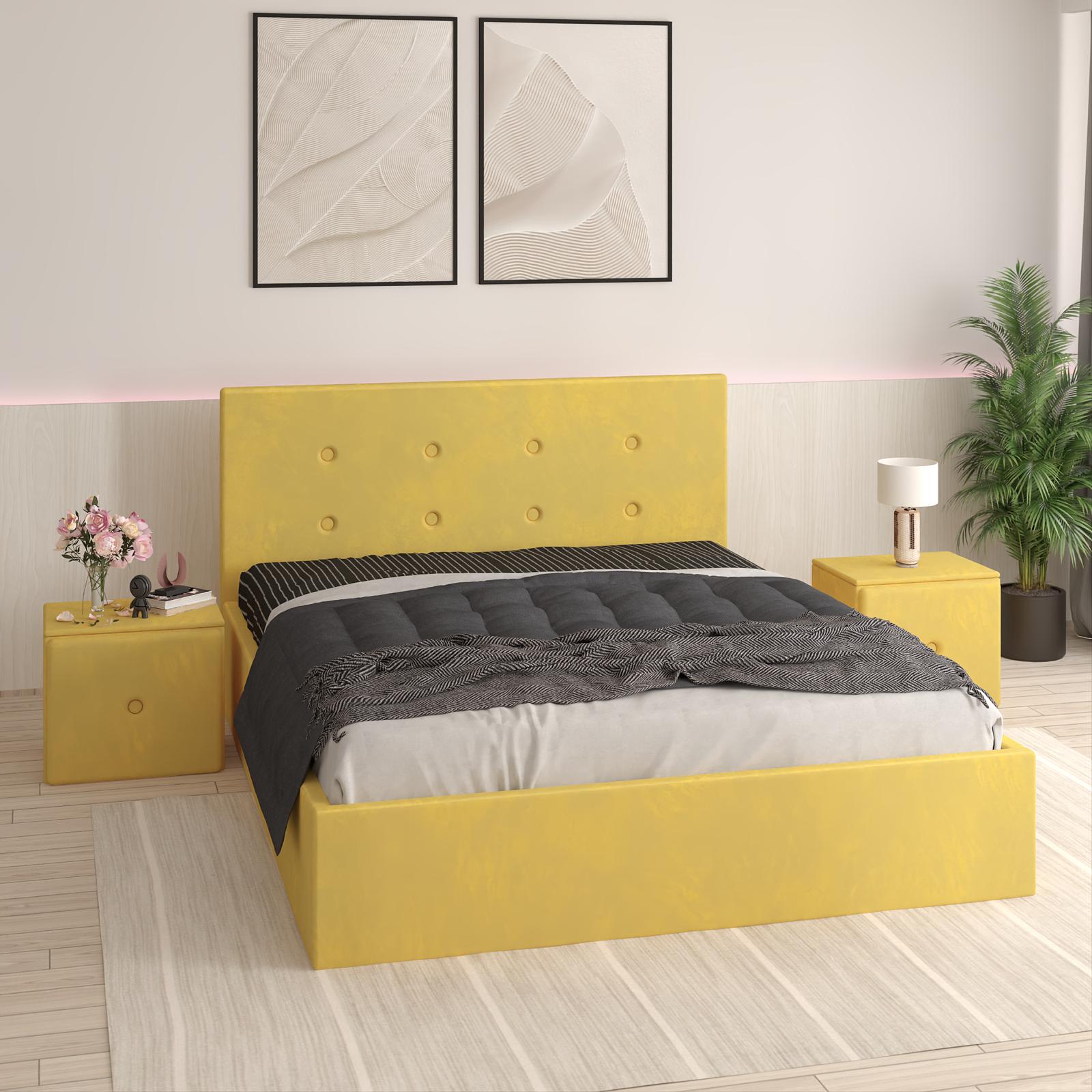 Pat Tapitat Adrian Galben Catifea Premium Cu Noptiere Tapitate