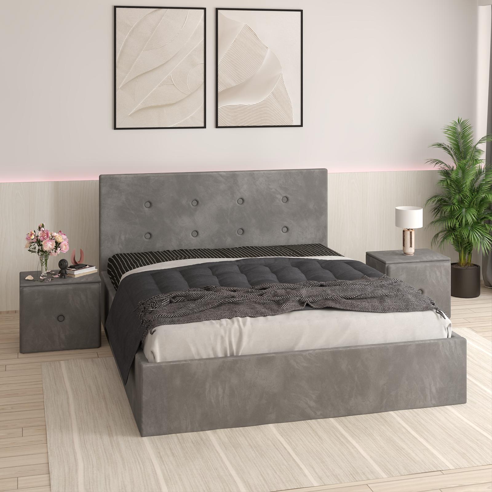 Pat Tapitat Adrian Gri Catifea Premium cu Noptiere Tapitate