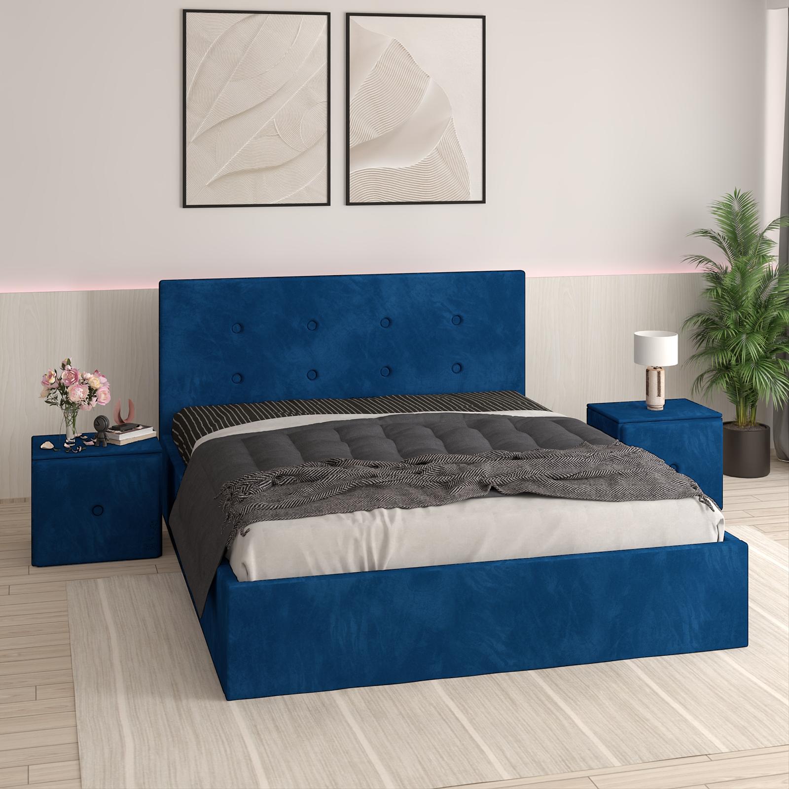 Pat Tapitat Adrian Albastru Catifea Premium Cu Noptiere Tapitate
