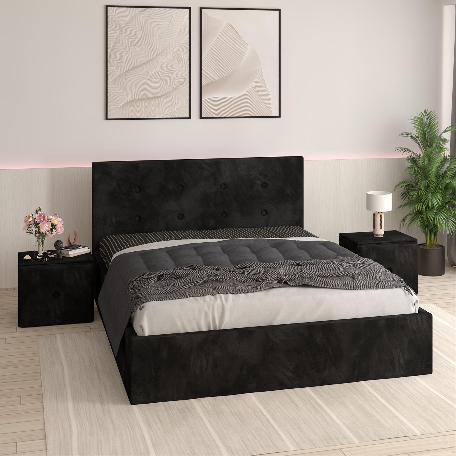 Pat Tapitat Adrian Negru Catifea Premium cu Noptiere Tapitate