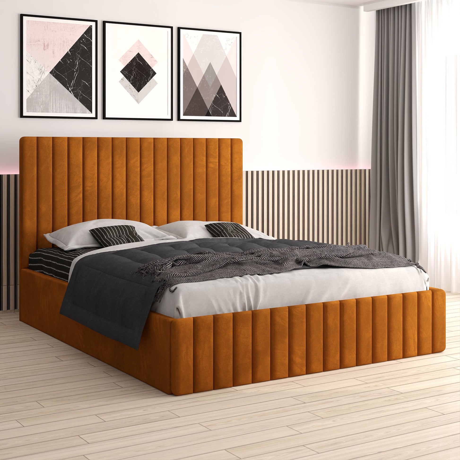 🔸 Tăblie înaltă și capitonată – oferă suport confortabil pentru citit sau relaxare, adăugând o notă de rafinament camerei tale.